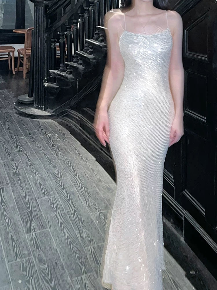 Niulatu Sheath Halter Sequin Long Prom Dresses Sexy Evening Dress HZ1110