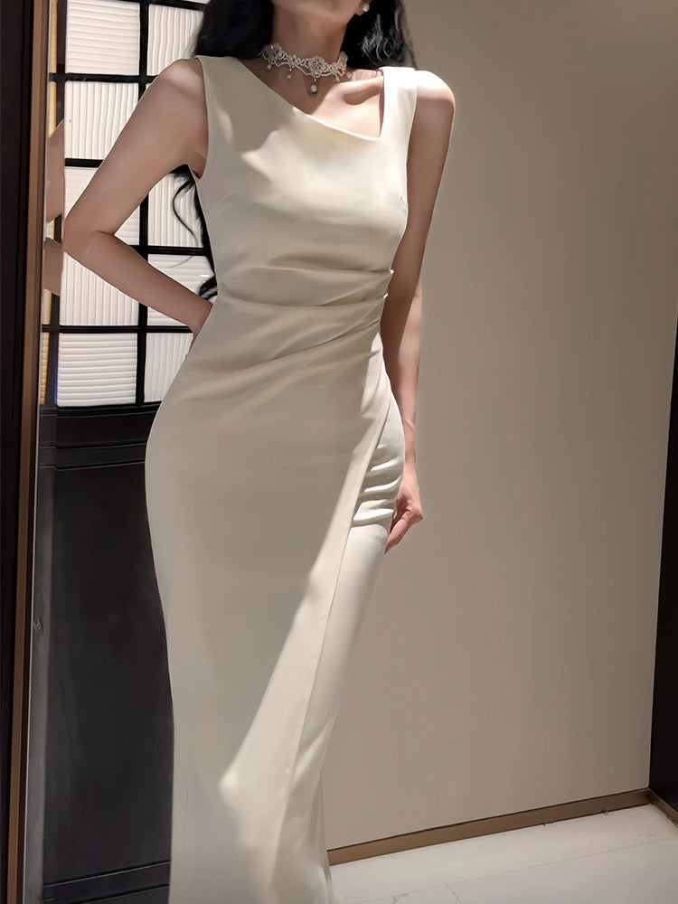 Niulatu Sheath Ivory Satin Slit Ankle Length Prom Dresses Evening Dress HZ1110