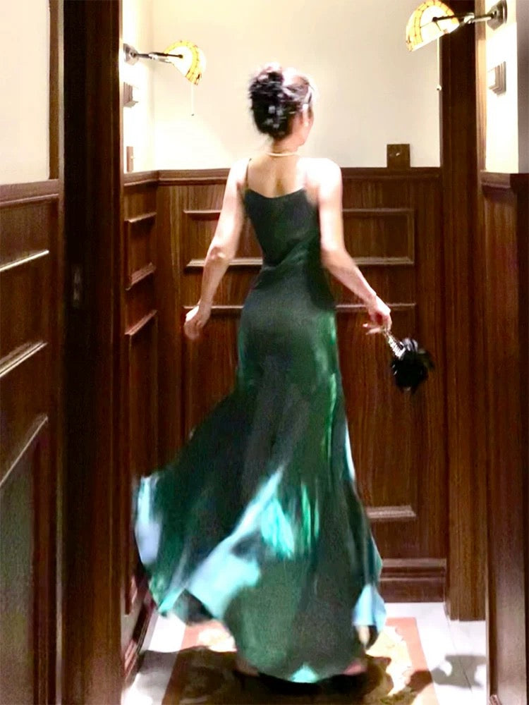 Niulatu Sheath Spaghetti Straps Sleeveless Green Long Prom Dresses Evening Dress HZ1110