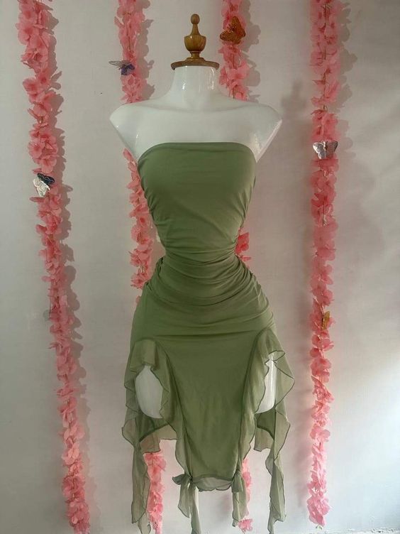 Niulatu Sheath Strapless Green Chiffon Homecoming Dresses Short Birthday Dress With Ruffles HZ1110