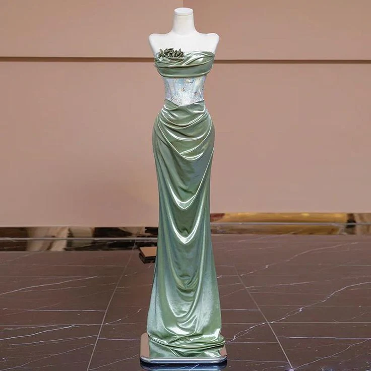 Niulatu Strapless Mermaid Pleated Evening Gown Formal Prom Dress HZ1007