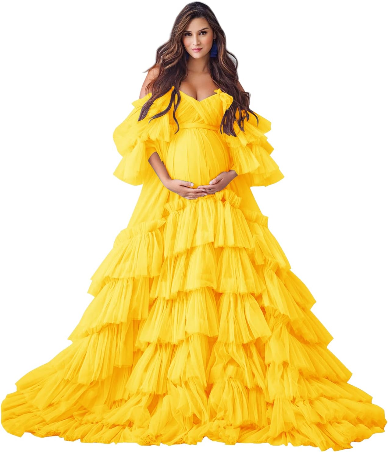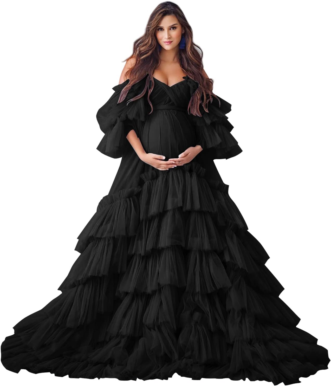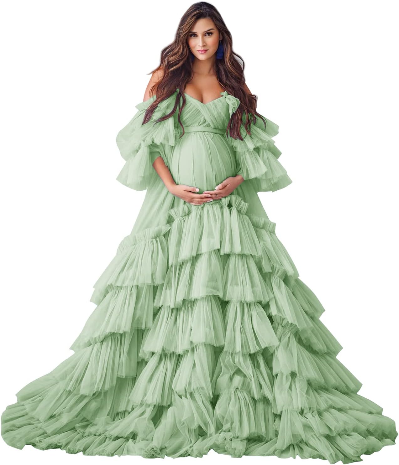 Women's Tulle Maternity Dress for Photoshoot Long Puffy Sleeve Off Shoulder Babyshower Bridal Pregnancy Gowns