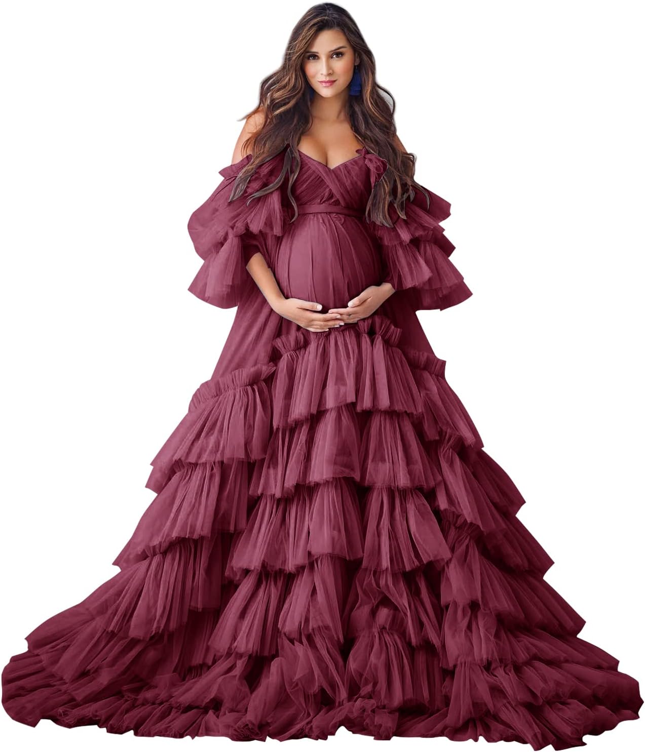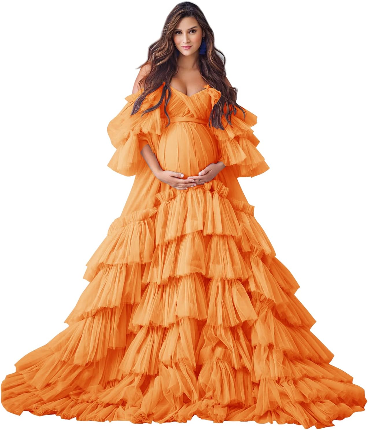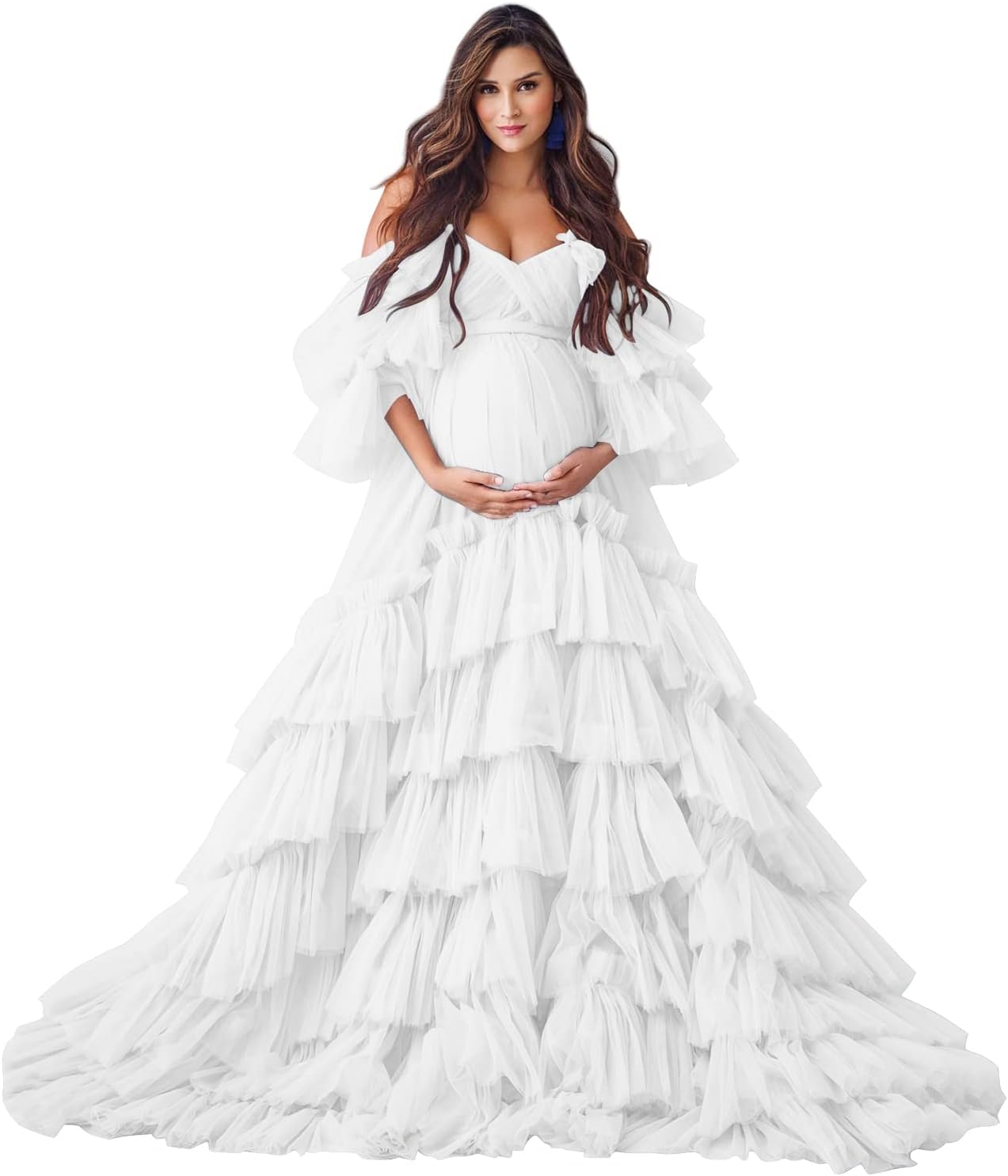 This puffy tulle robe maternity photoshoot dress is perfect for wedding dress for bride maternity gown for photoshoot, bridal lingerie, bridal party, pregnancy photoshoot dress, baby shower dress, wedding scarf, maternity photo shoot, sleepwear, bathrobe, nightgown, lingerie for bride,and other special occasions.