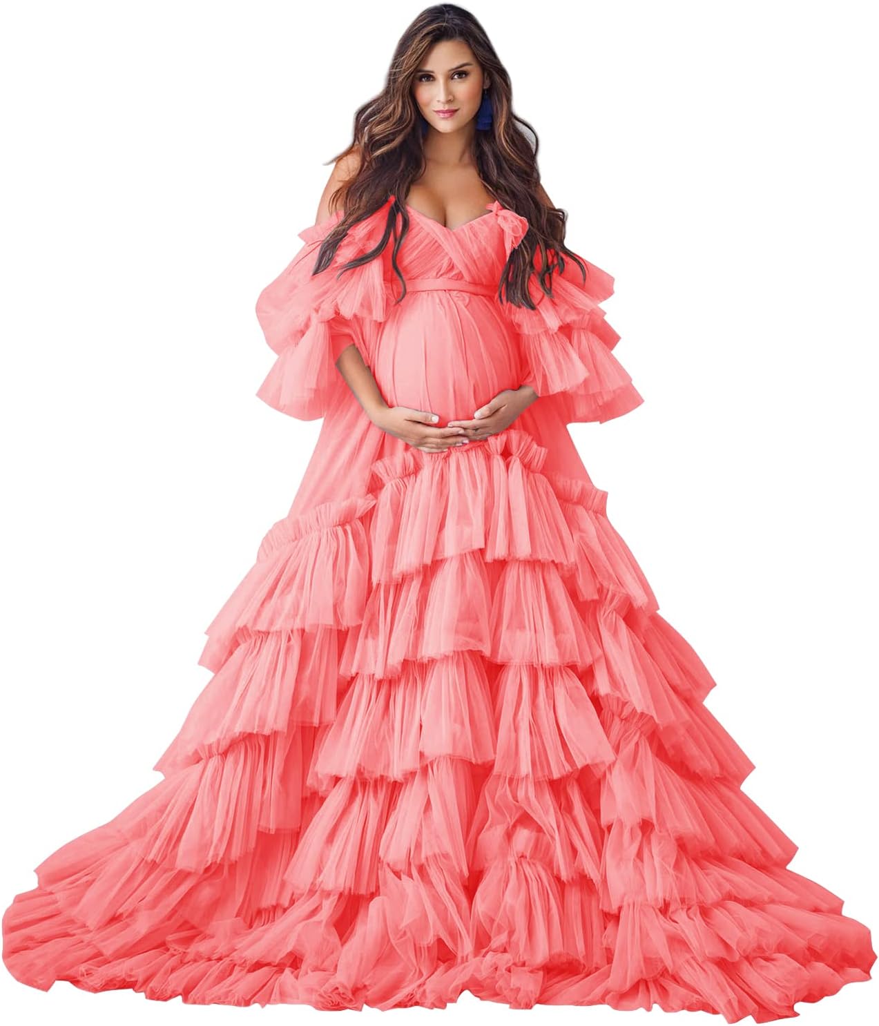 Tulle Maternity Dresses for Photoshoot Pregnant Photoshoot Outfits, Standard Size Fit Most People
