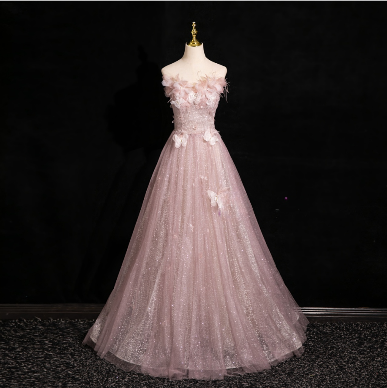 Niulatu Tulle Sequins Off the Shoulder Butterfly Flower Prom Dress HZ1103