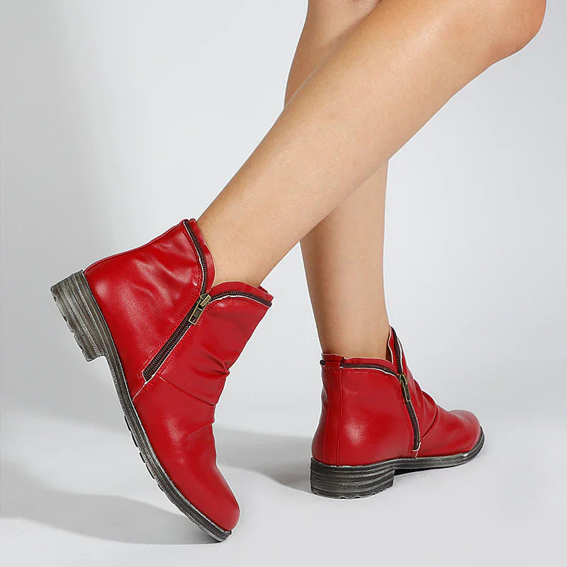 Niulatu Women's Boots Leather Ankle Boots Flat Shoes Autumn Winter Woman Snow Boots Platform Zipper Punk Boots Ladies Shoes Botas Mujer DJSE