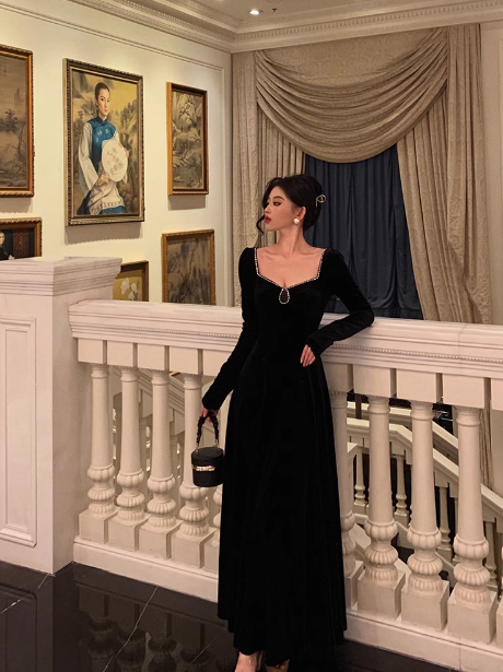 Modest A line Long Sleeves Black Velvet 21st Birthday Dress Party Gown Birthday Outfits Birthday Dress Ideas For Women HZ1214