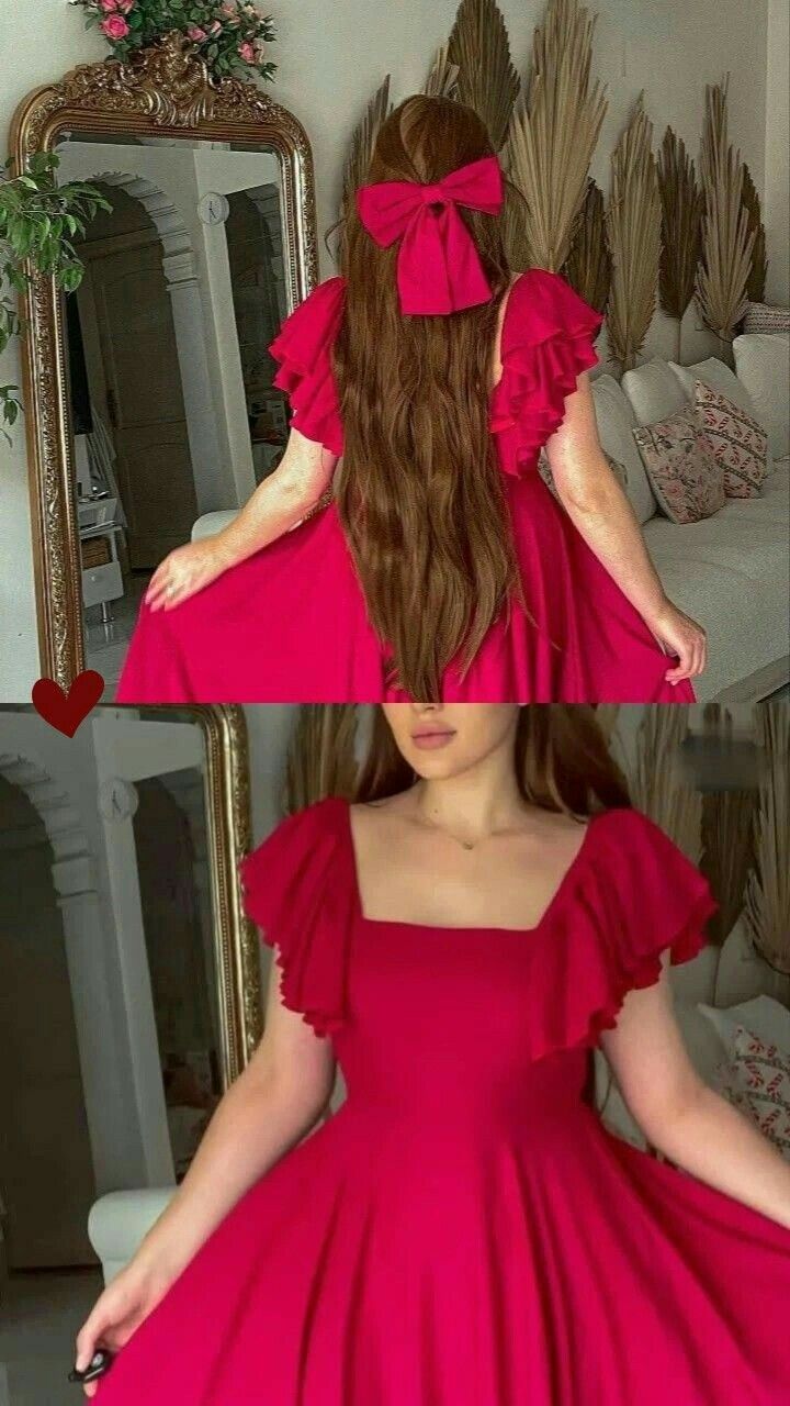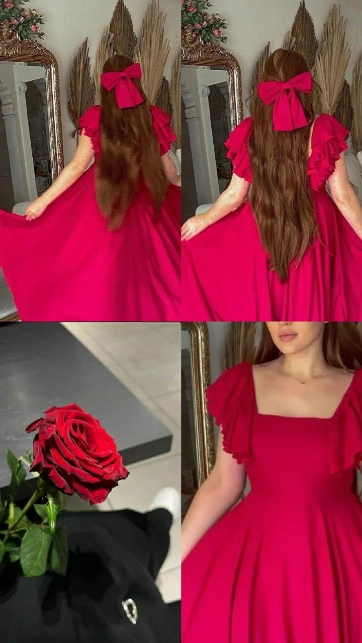 Niulatu A line Square Neckline Hot Pink Prom Dress Party Evening Dress HZ1110