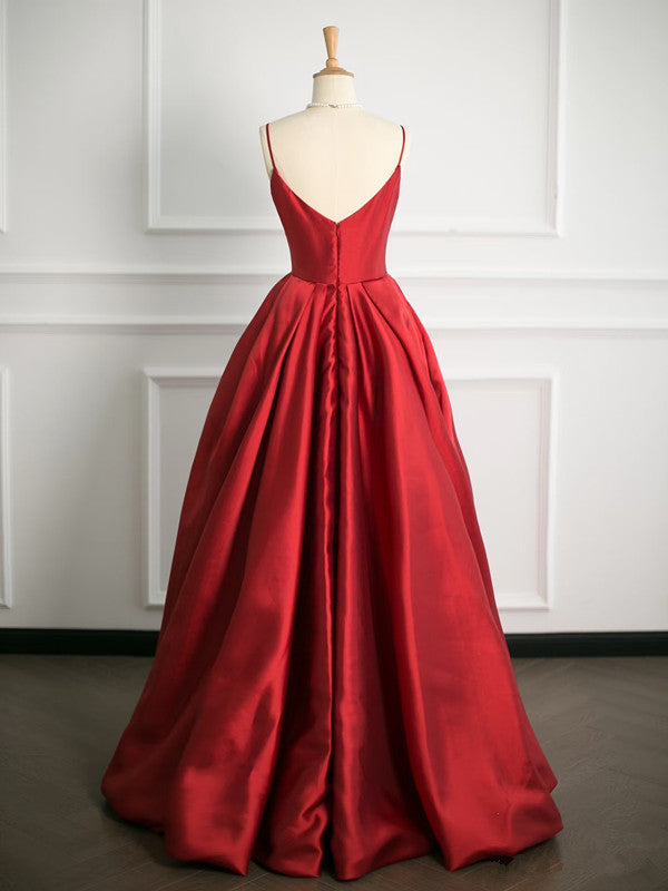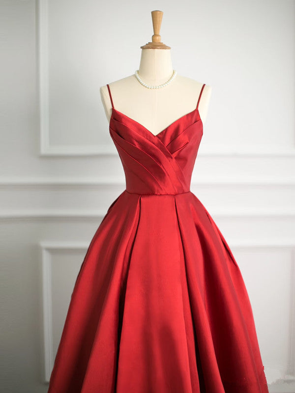 Niulatu Ball Gown Spaghetti Straps Red Satin Prom Dresses Party Evening Dress HZ1110
