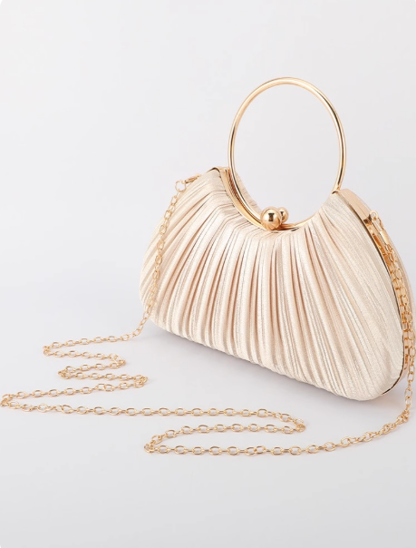 Niulatu New Chic White Pleated Clutch Bag Sparkly Party Handbag HZ1031