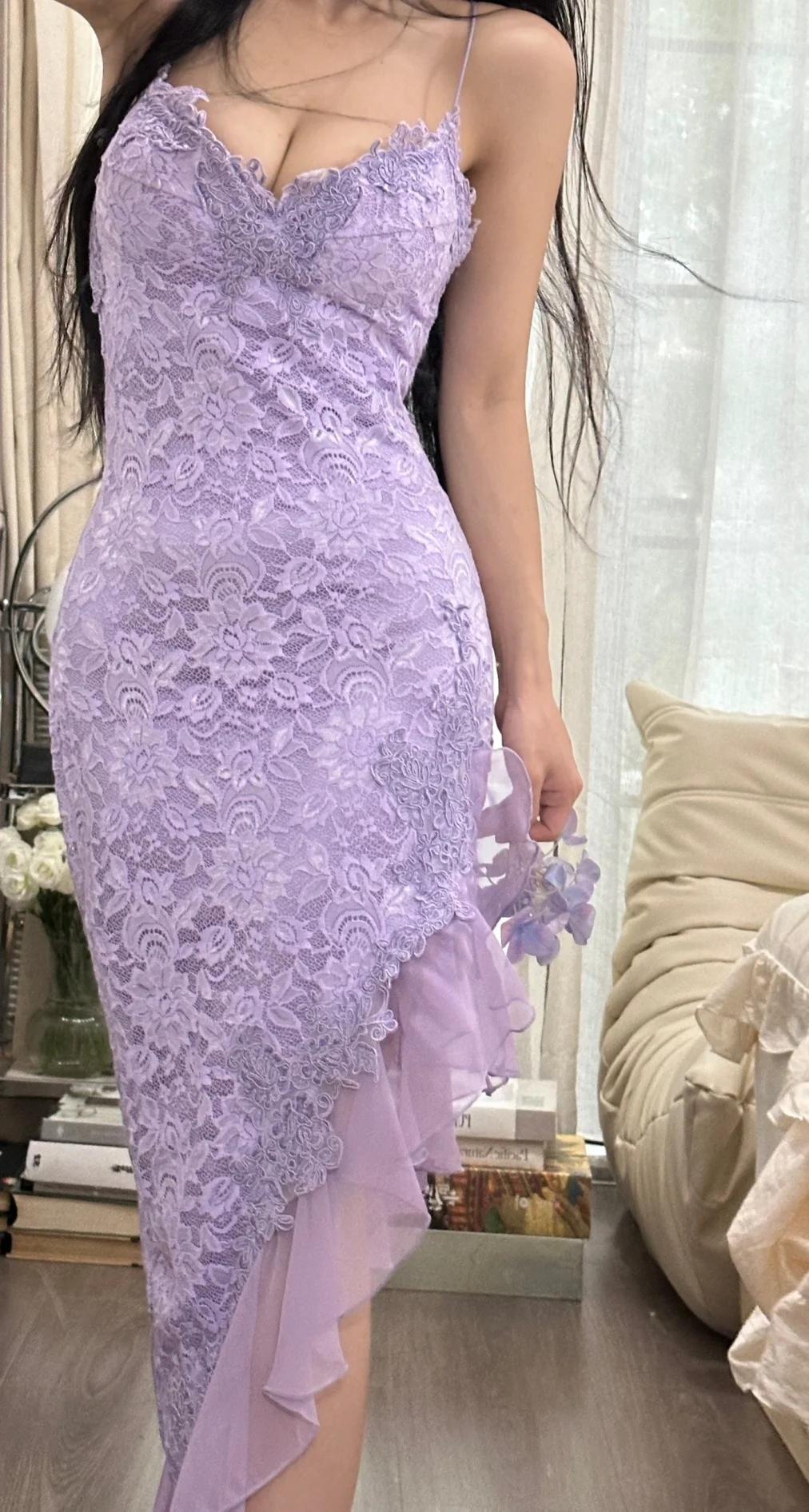 Niulatu Purple Sheath Spaghetti Strap Chiffon Applique Prom Dress Gorgeous Party Dress HZ1103