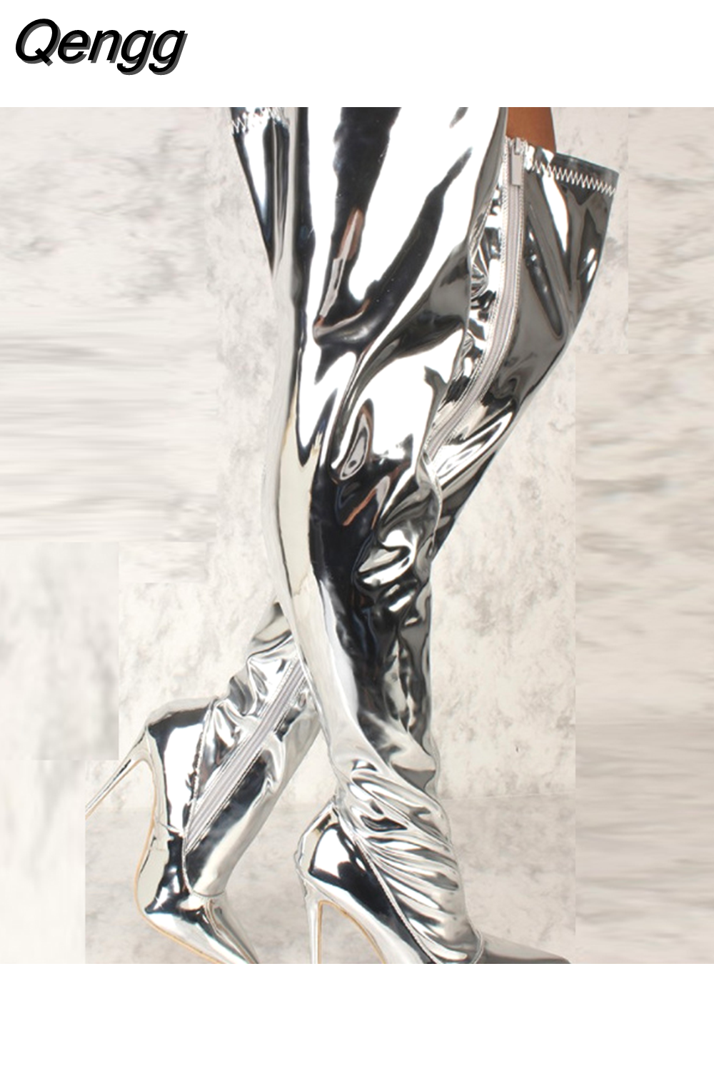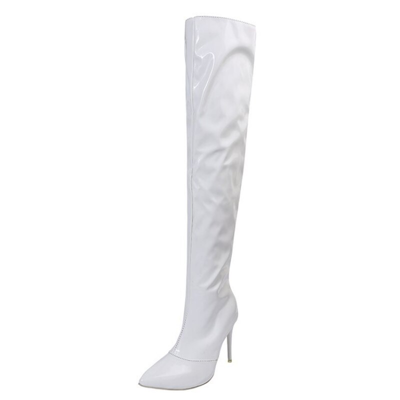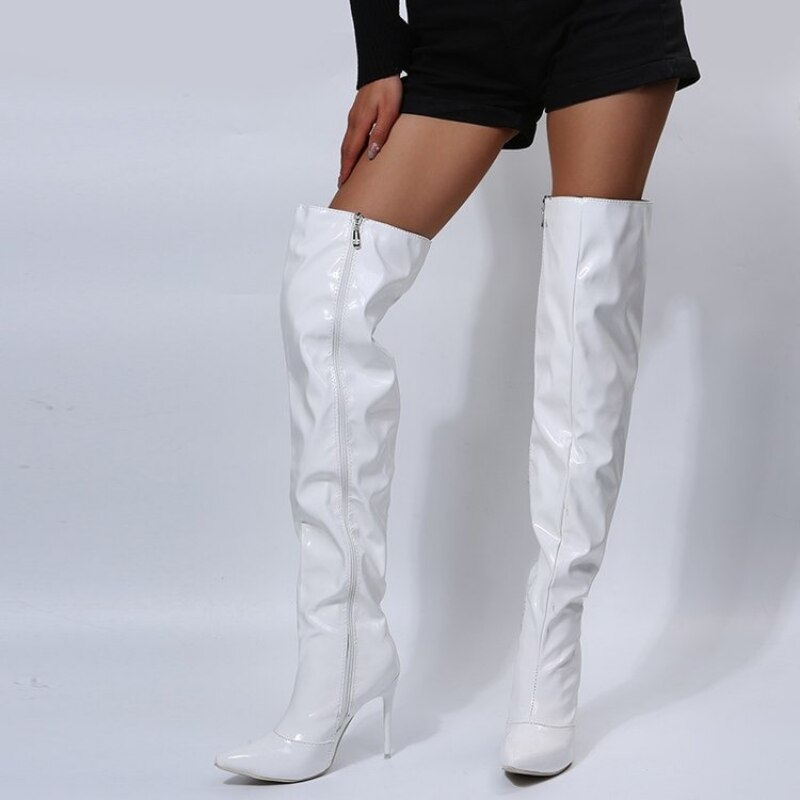 Niulatu Women Boots Mirror Platform Pointy Toe Punk High Thin Heels Over The Knee Long Boots High Quality Zip Casual Party Shoes DJSE