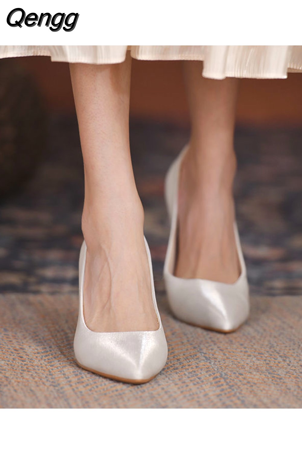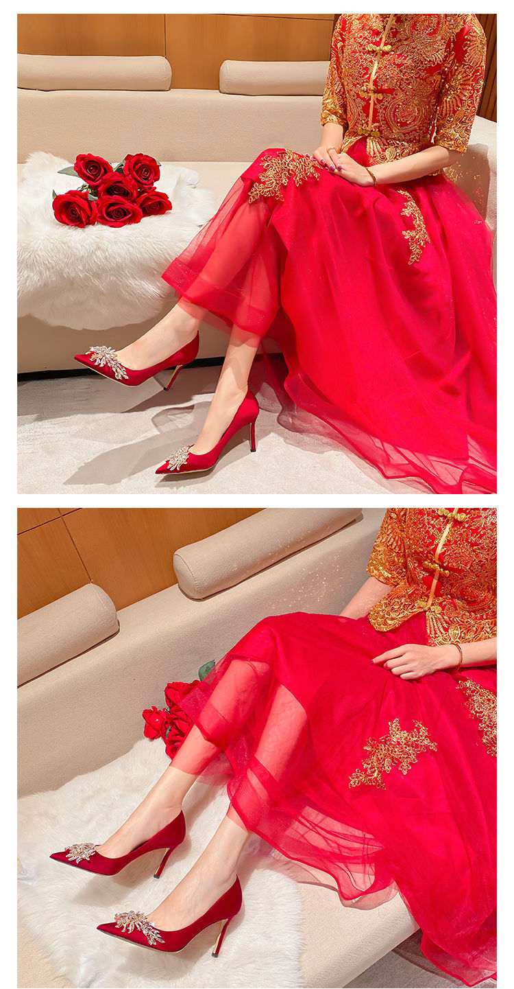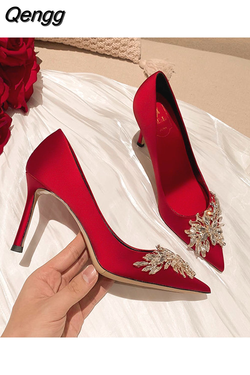 Niulatu Women Bridal Shoes Wedding Shoes High Heels Satin Silk Pumps Female Stiletto Luxurious Pointed Diamond Party Shoes DJSE
