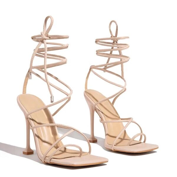 Niulatu Women Sandals Sexy Summer Shoes Gladiator Clip Toe High Heels Bandage Buckle Strap Pumps Squre Toe Ladies Party Fashion Stiletto DJSE