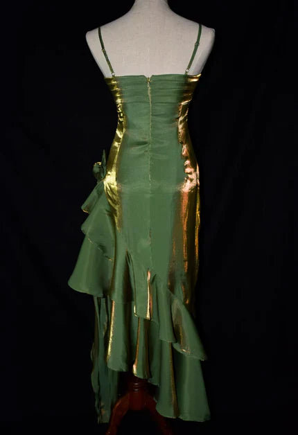 Pretty Charming Mermaid High Low Satin Straps Party Dress Vintage Style Prom Dress Graduation Dress HZ1214