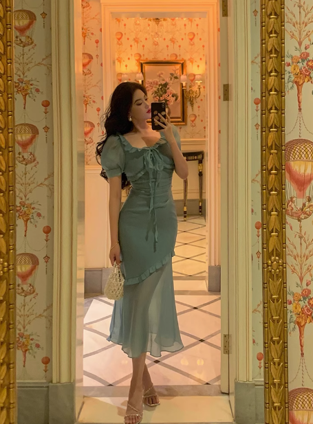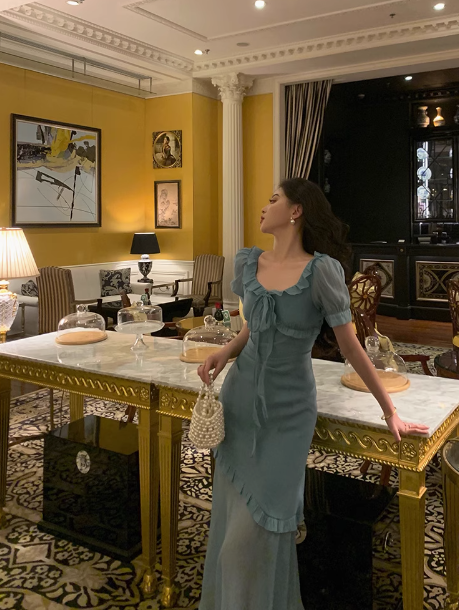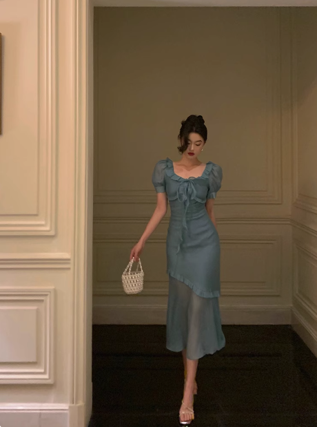 Sexy Mermaid Square Chiffon Blue 21st Birthday Dress Party Gown Birthday Outfits Birthday Dress Ideas For Women HZ1214