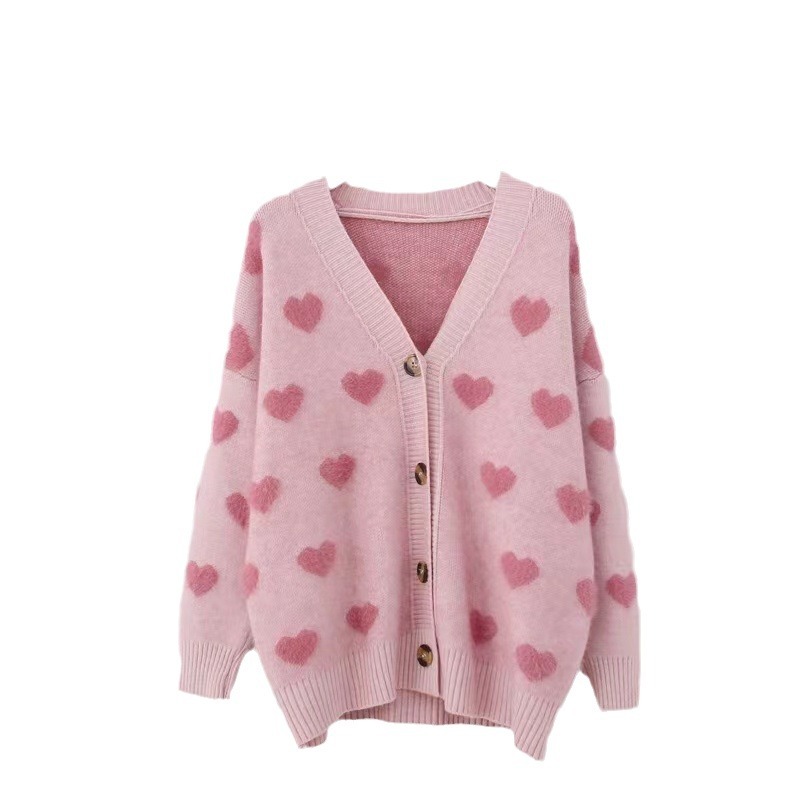 2025 New Autumn And Winter Small Love Imitation Sting Velvet Knitted Cardigan Korean Version Of Loose Sweet Sweater Women's Coat HZ0108