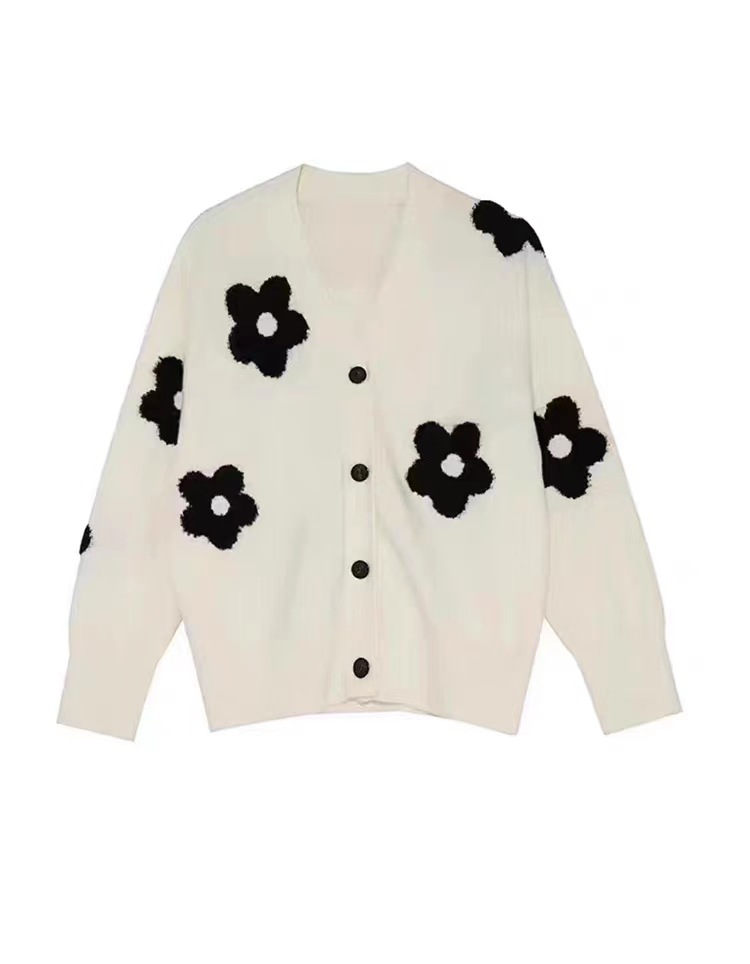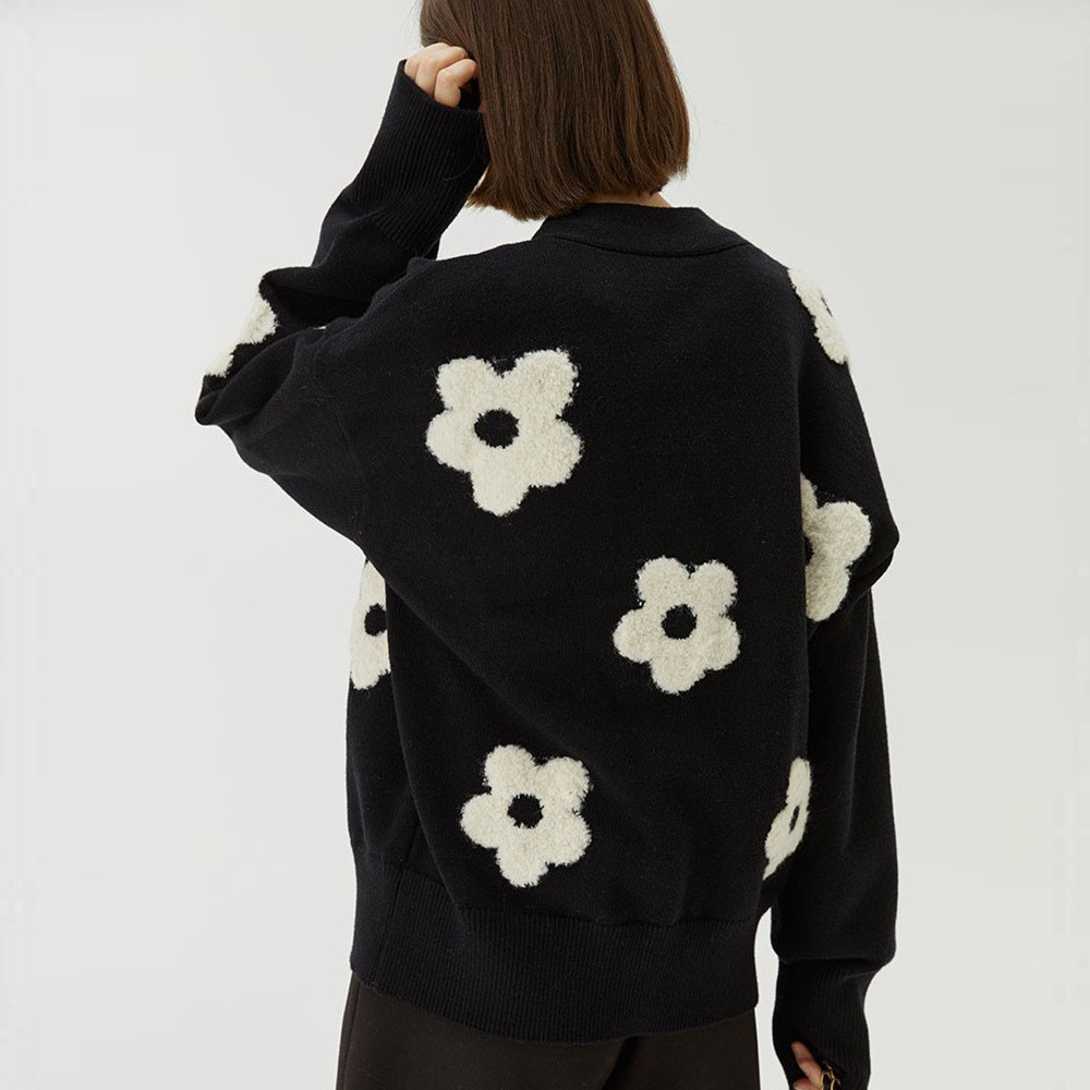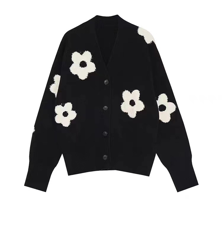 2025 New High-End Lazy Retro Short Knitted Cardigan Three-Dimensional Flower Sweater Women's Coat Autumn And Winter HZ0108