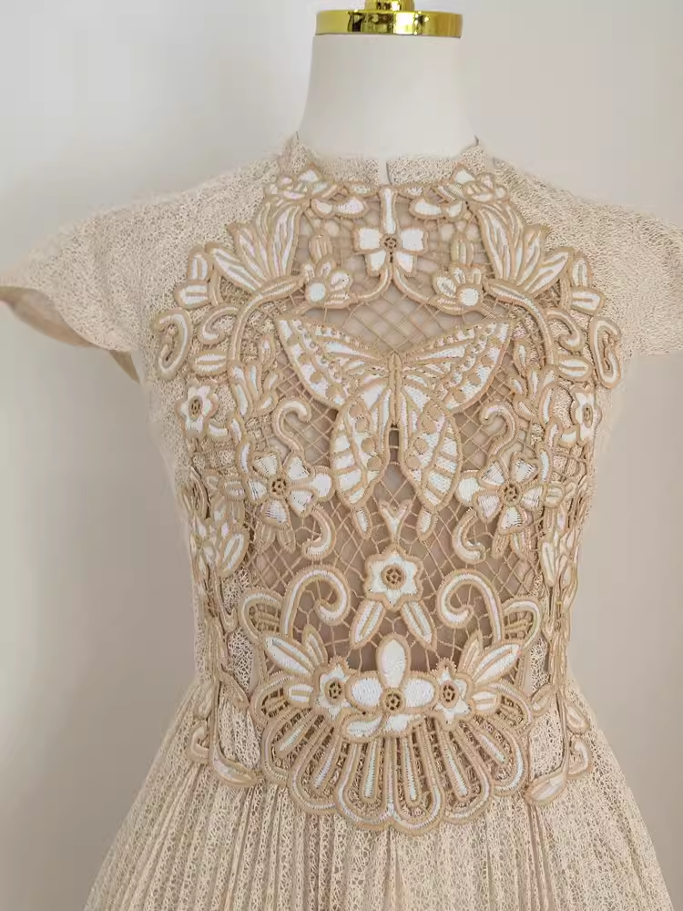 Niulatu A line High Neckline Lace Vacation Dress Tulle Women Dresses SD137