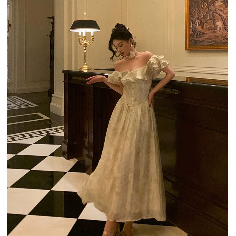 Niulatu A Line Off The Shoulder Short Sleeves Floral Prom Dresses Birthday Outfits Evening Gown SD952