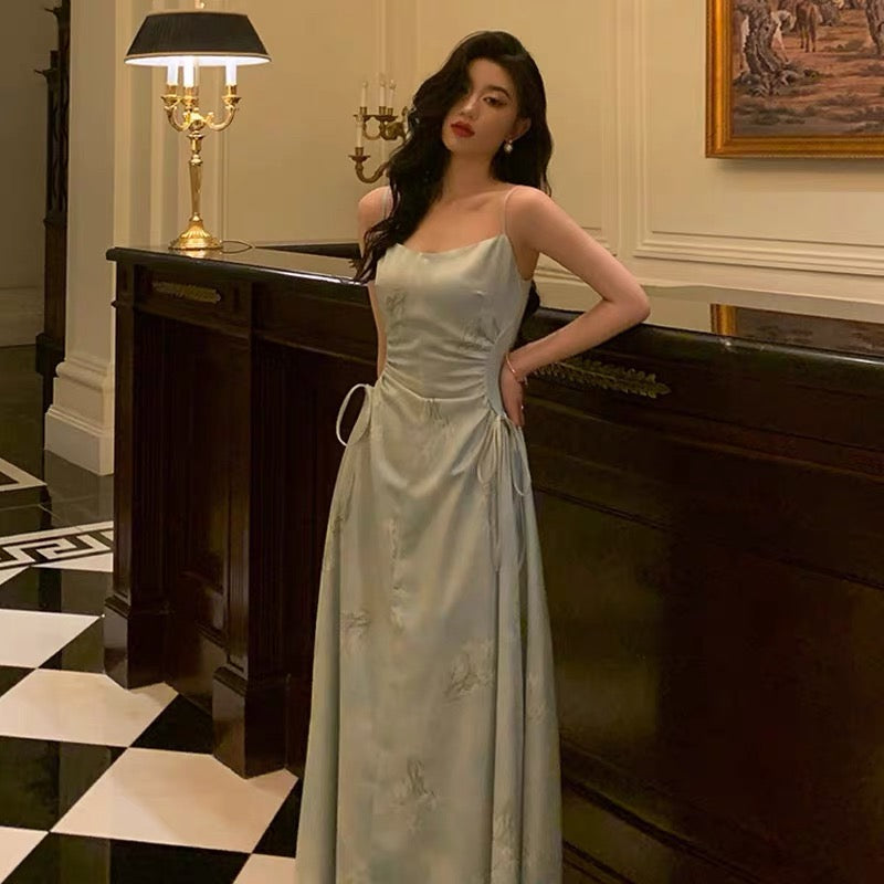 Niulatu A Line Spaghetti Straps Green Floral Ruffles Prom Dresses Birthday Outfits Evening Gown SD982