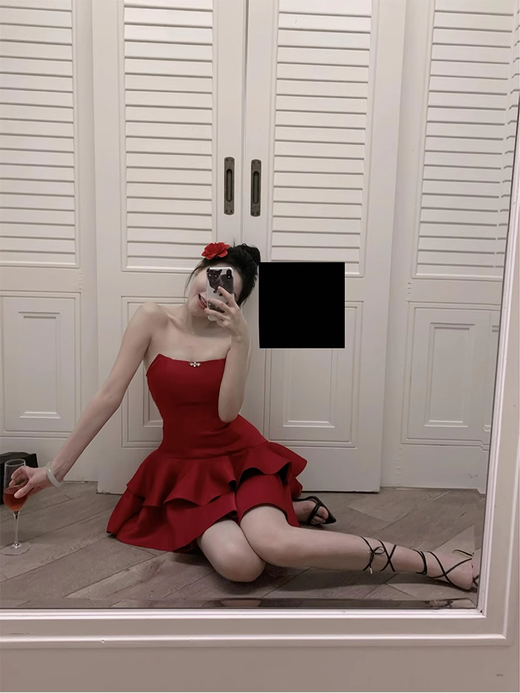 Niulatu A line Strapless Red Dinner Dress Hoco Dresses Short Birthday Outfits SD267