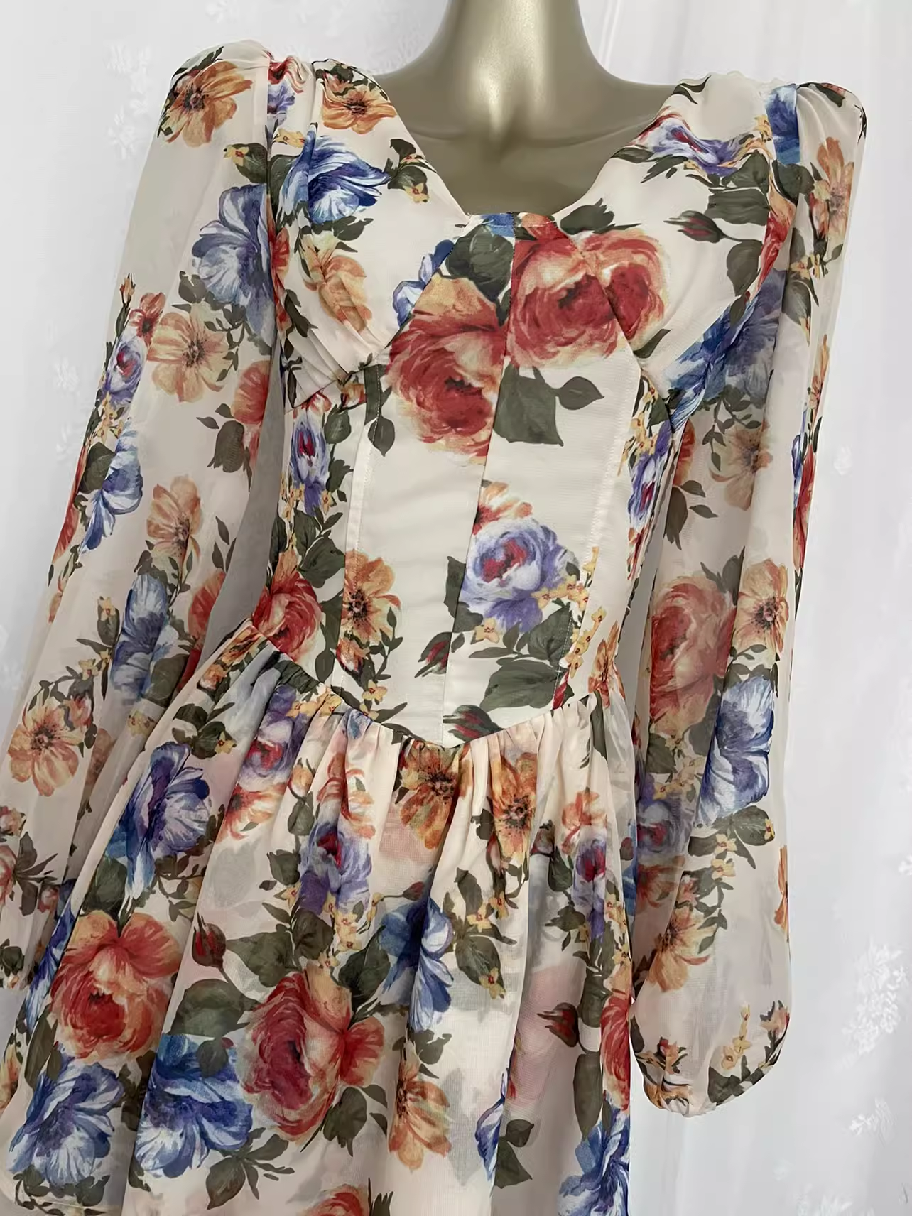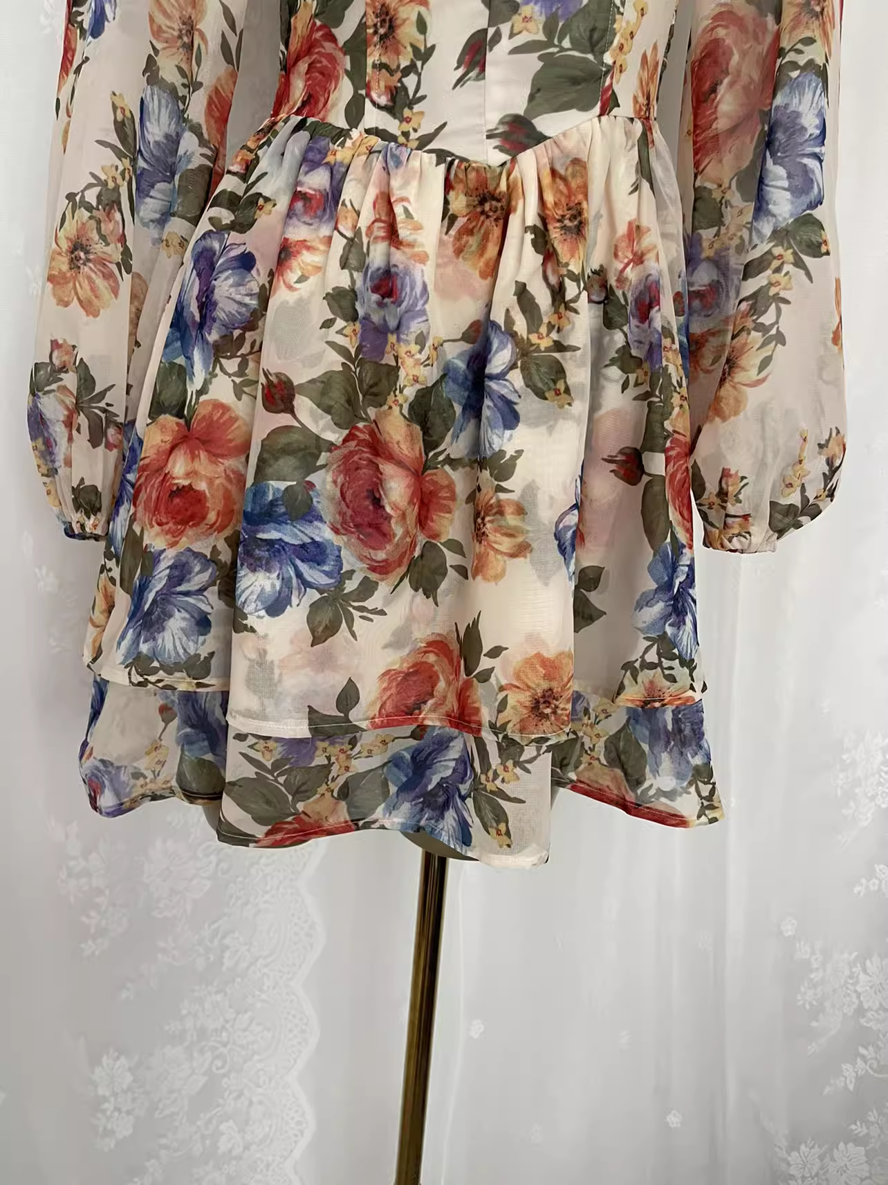 Niulatu A line V Neckline Floral Chiffon Travel Vacation Floral Beach Dress Short Dress SD0012