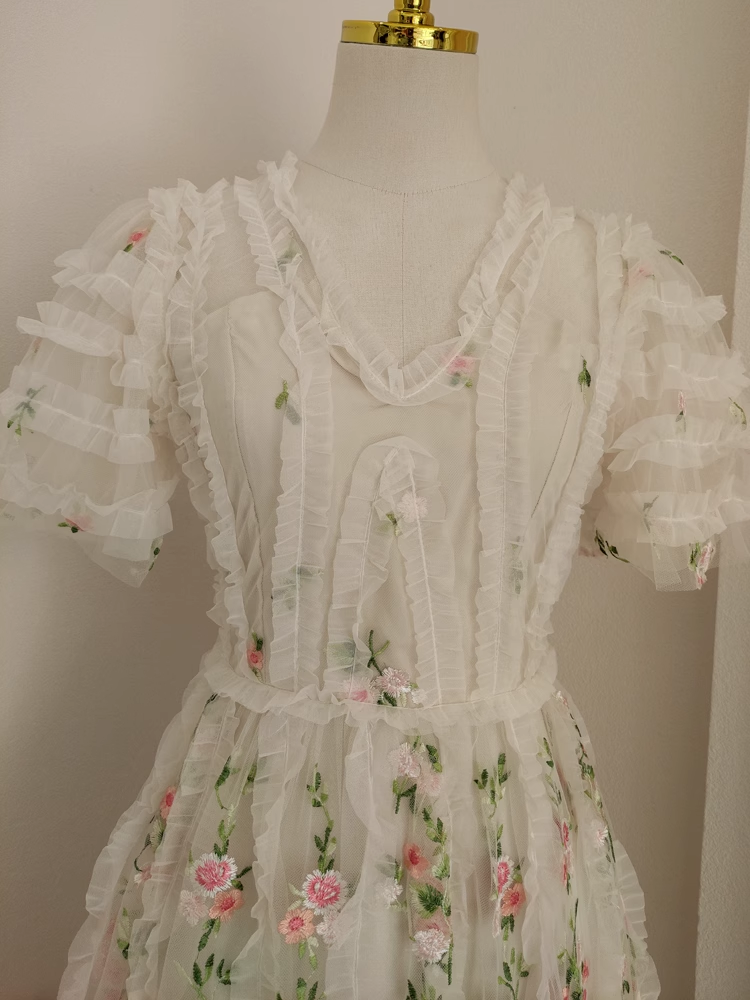 Niulatu A line V Neckline Lace Tulle Floral Dinner Party Dresses Birthday Outfits SD390