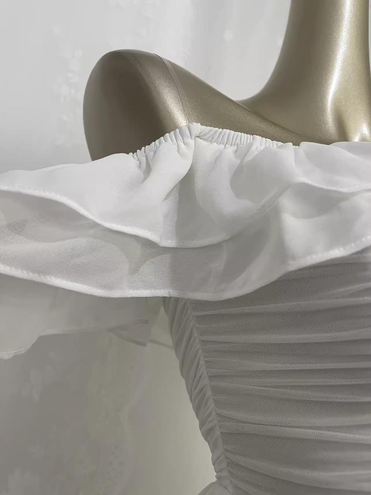 Niulatu A line White Chiffon Travel Vacation Dress Short Birthday Dress SD0063
