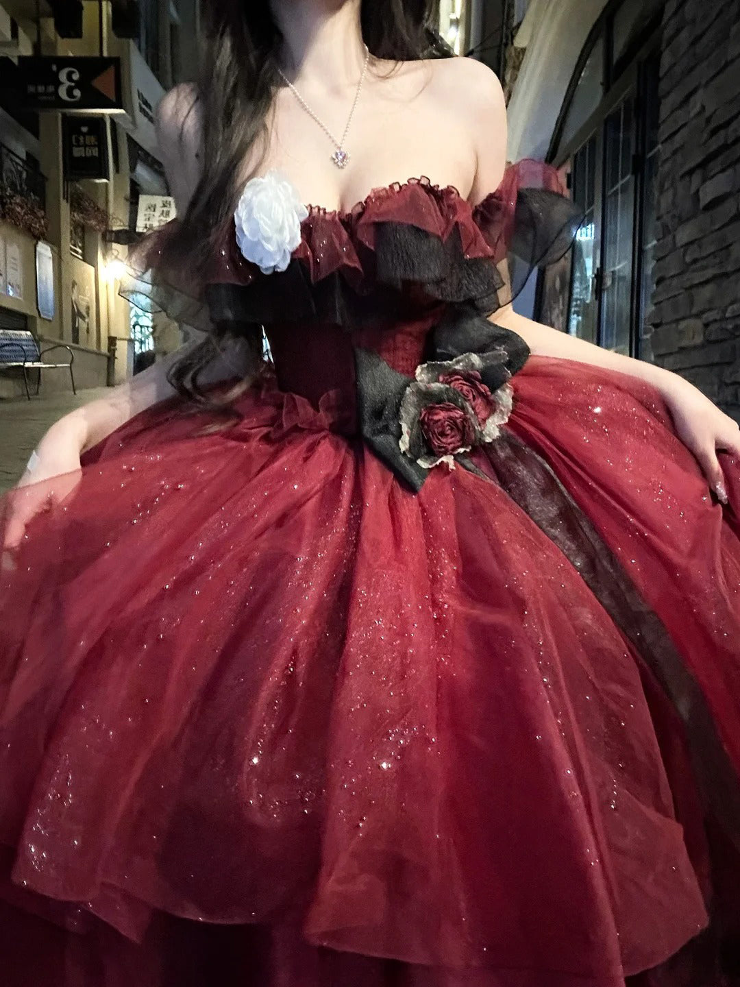Niulatu Ball Gown Strapless Burgundy Tulle Birthday Dresses Night Party Dress SD1159