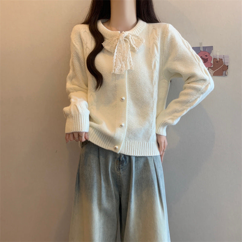 Butterfly Lace Lace Women's Sweater Jacket Autumn And Winter Small Lazy Style Design Knitted Open Shirt HZ0108