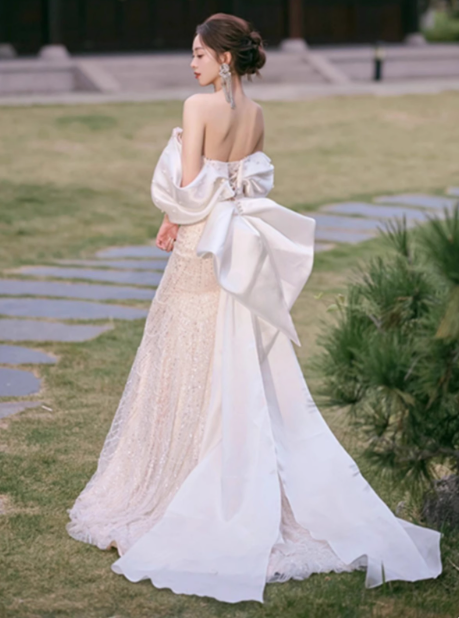 Classic Bridal Gown Mermaid Off The Shoulder Sequin White Wedding Dresses Minimalist Bridal Gowns HZ1214