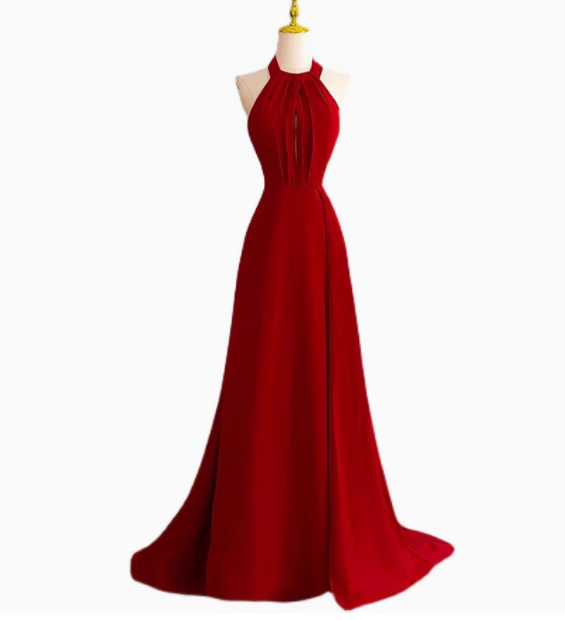 Classy A line Halter Sleeveless Satin Prom Dresses Red Summer Wedding Guest Dresses Wedding Guest Outfits HZ1214