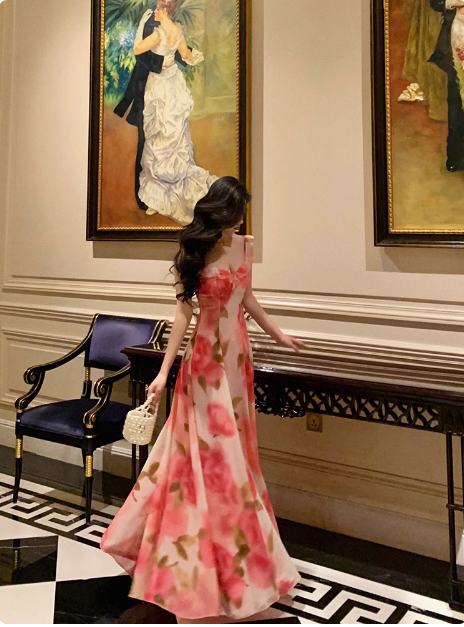 Classy A line Spaghetti Straps Pink Floral Sleeveless 18th Birthday Dress Party Gown Birthday Outfits Birthday Dress Ideas For Women HZ1214