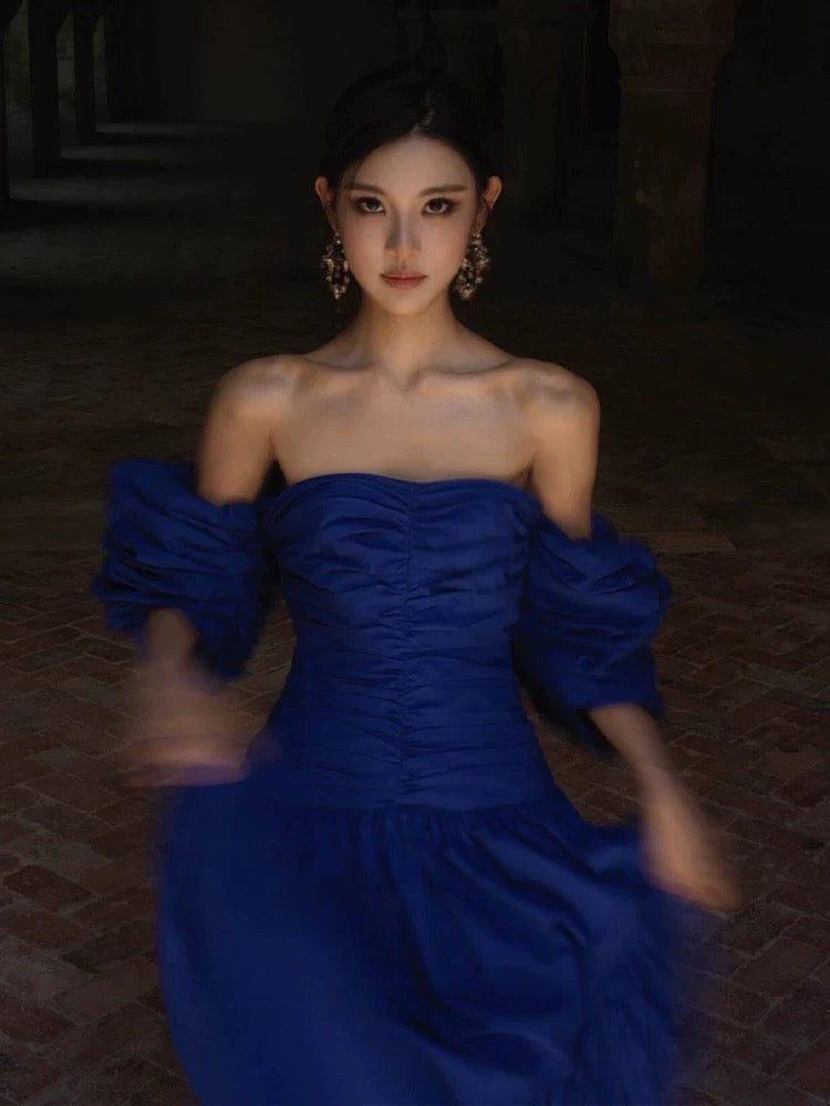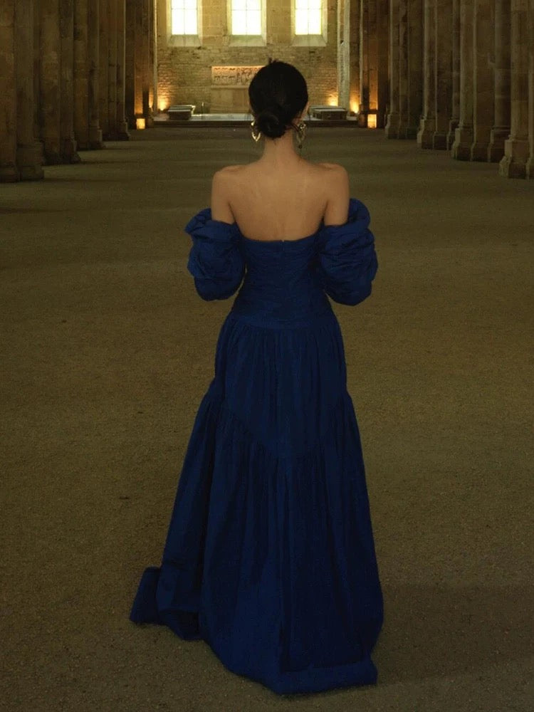 Classy A line Strapless Royal Blue Long Prom Gown Summer Wedding Guest Dress Bridal Guest Dresses Wedding Outfits For Guest HZ1214