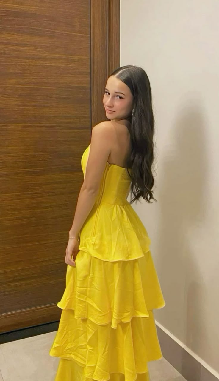 Classy A line Strapless Yellow Long Prom Dresses Formal Summer Wedding Guest Dresses Wedding Guest Outfit HZ1214