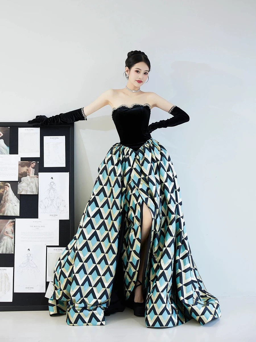 Classy Ball Gown Strapless Satin Black Evening Dress Long Prom Dresses HZ1214