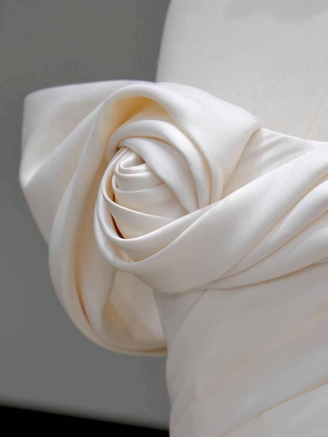 Classy Elegant A Line Off The Shoulder Flowers Satin Long Wedding Dress Brides Dress HZ1214