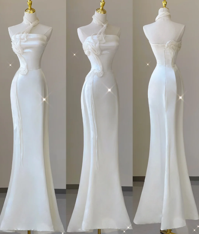 Classy Elegant Mermaid One Shoulder White Long Satin Wedding Dresses Brides Dress HZ1214