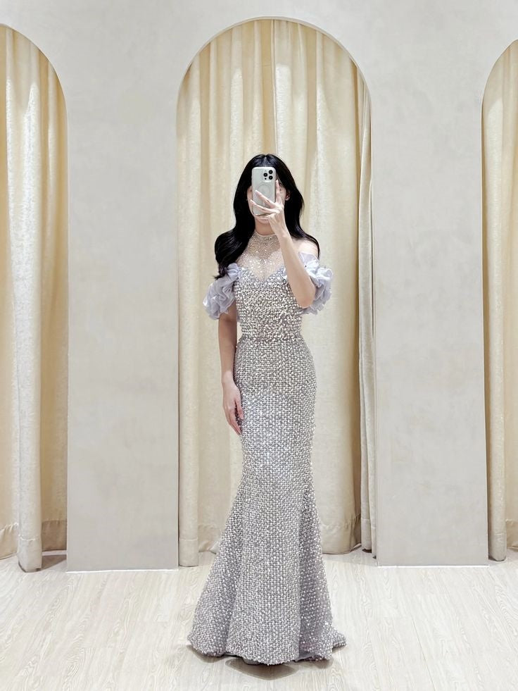 Classy Mermaid High Neck Ruffles Sequin Prom Gown Summer Wedding Guest Dress Bridal Guest Dresses Wedding Outfits For Guest HZ1214