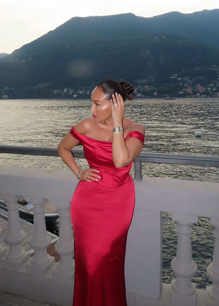 Classy Mermaid Off The Shoulder Red Long Formal Gown Summer Wedding Guest Dress Bridal Guest Dresses Wedding Outfits For Guest HZ1214