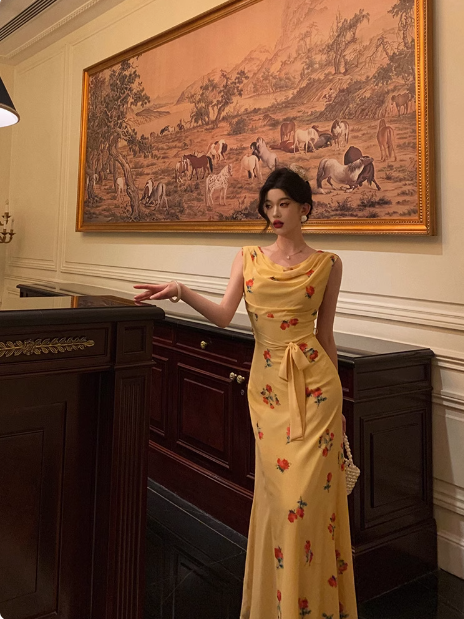 Classy Mermaid Yellow Floral Long 18th Birthday Dress Party Gown 21st Birthday Outfits Birthday Dress Ideas For Women HZ1214