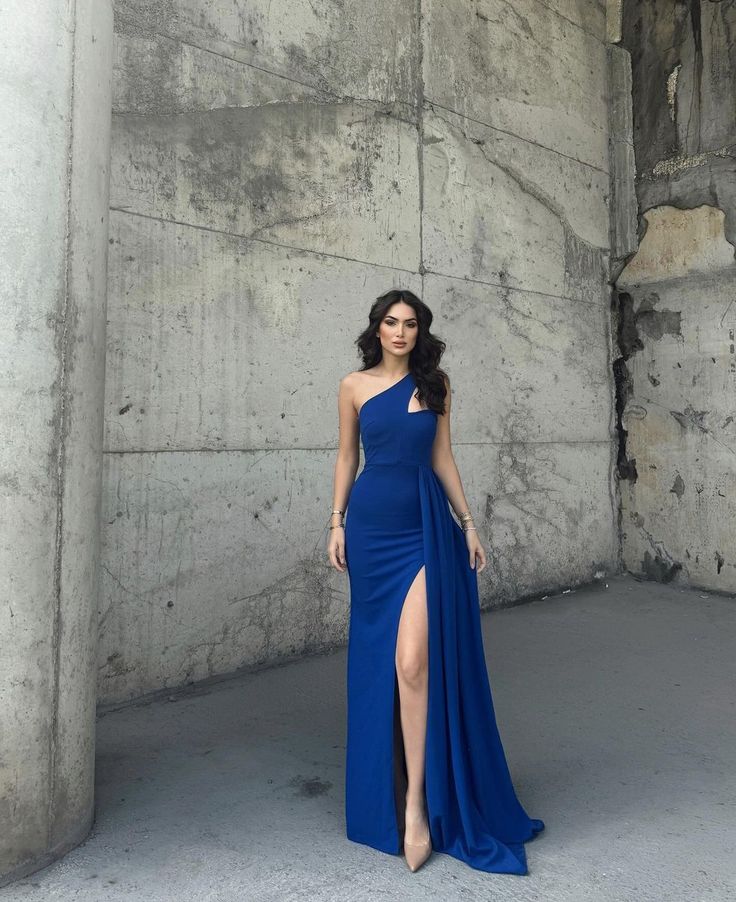 Classy Sheath One Shoulder Satin Royal Blue Long Formal Gown Summer Wedding Guest Dress Bridal Guest Dresses Wedding Outfits For Guest HZ1214