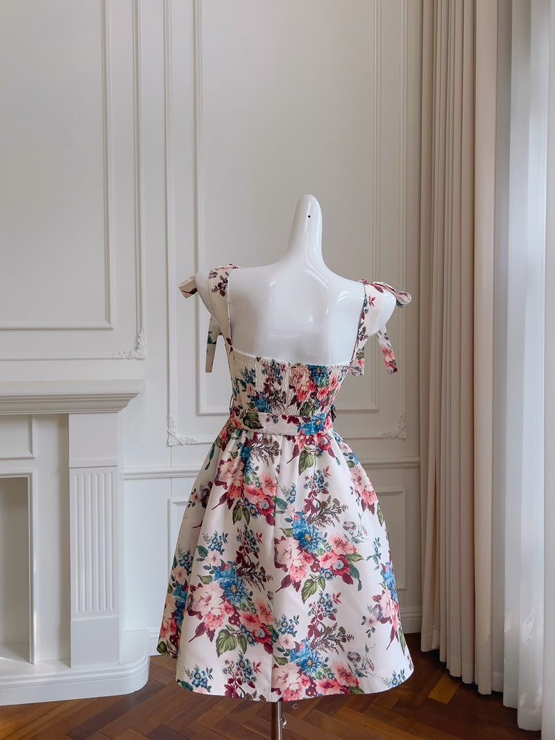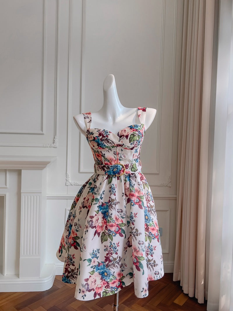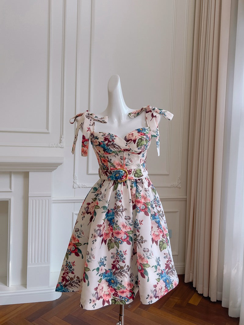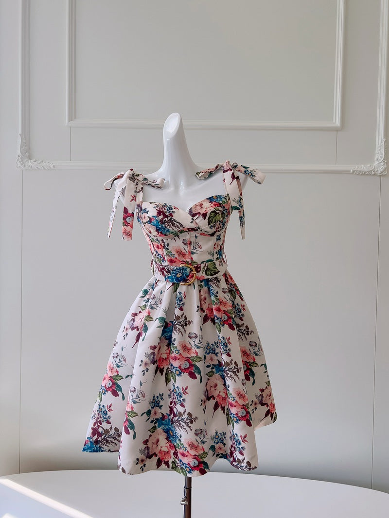 Cute A line Spaghetti Straps Floral Satin Short Homecoming Dress Summer Middle School Formal 8th Grade Hoco Dresses Summer Homecoming Outfits HZ1214
