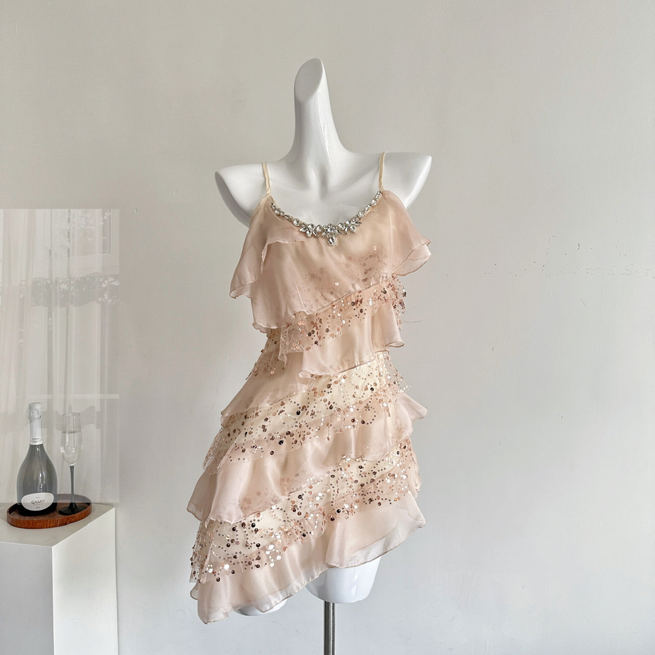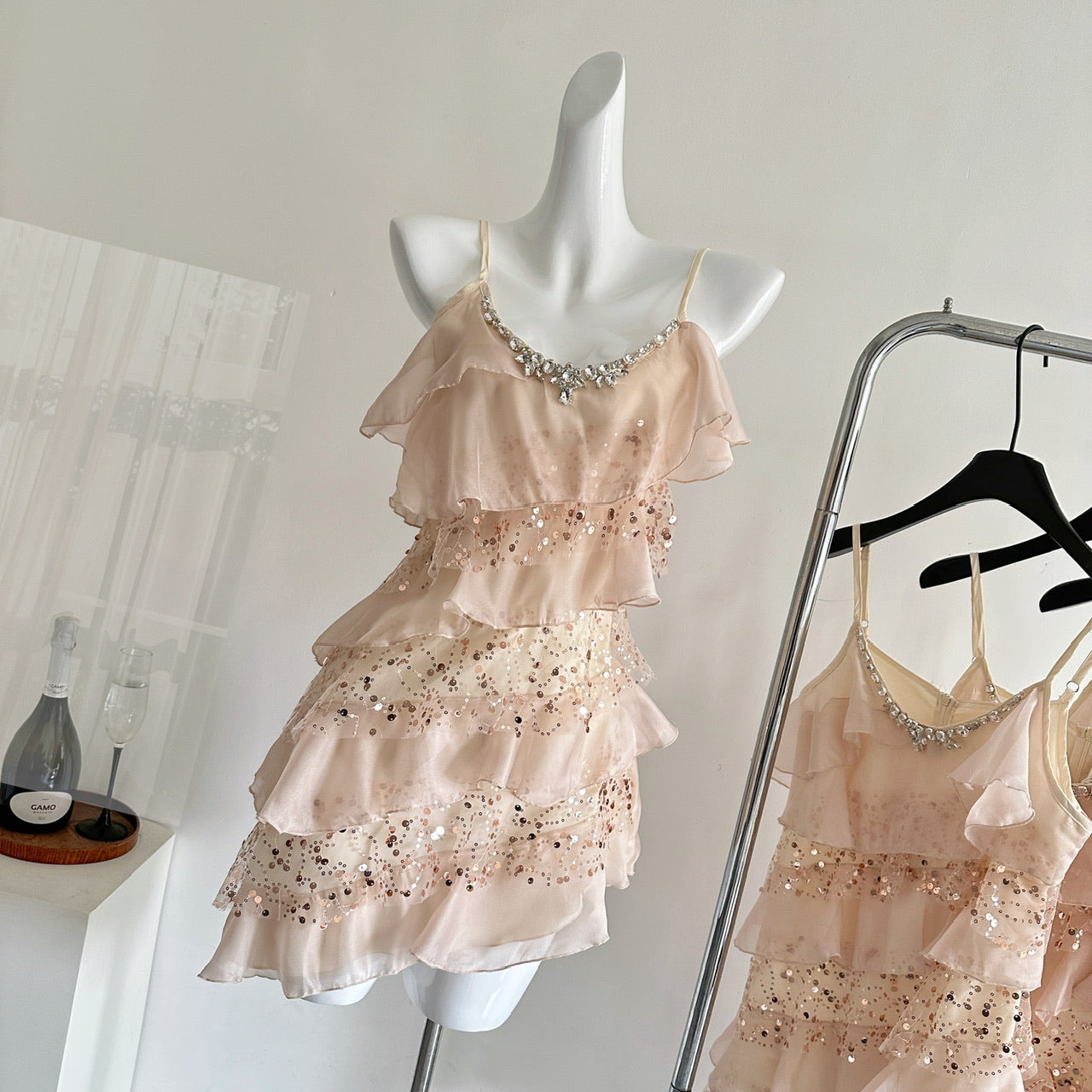 Cute A Line Spaghetti Straps Pink Sequin Casual Dress Summer Short Holiday Dresses HZ1214