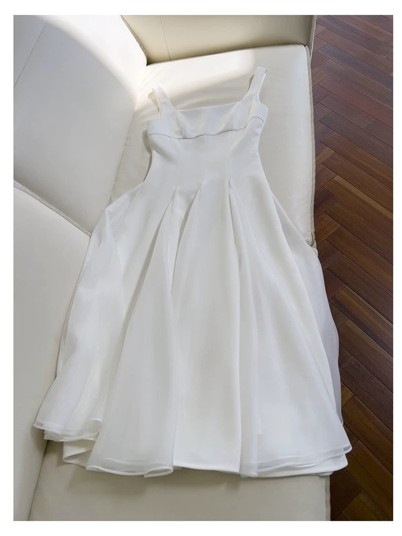 Elegant A line Square Neck White Sleeveless Long Evening Party Gowns Evening Formal Dresses Prom Dress HZ1214