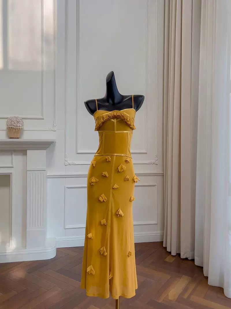 Elegant Mermaid Spaghetti Straps Yellow Sleeveless Long Evening Party Gowns Evening Formal Dresses Prom Dress HZ1214