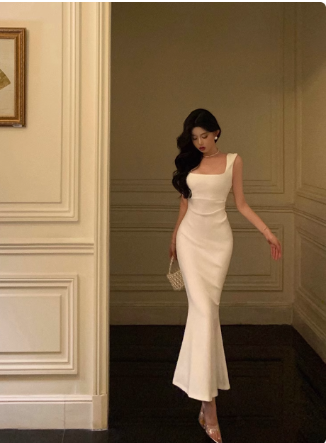 Elegant Mermaid Square Neckline White Sleeveless Burgundy 23rd Birthday Dress Party Gown Birthday Outfits Birthday Dress Ideas For Women HZ1214
