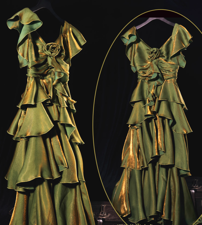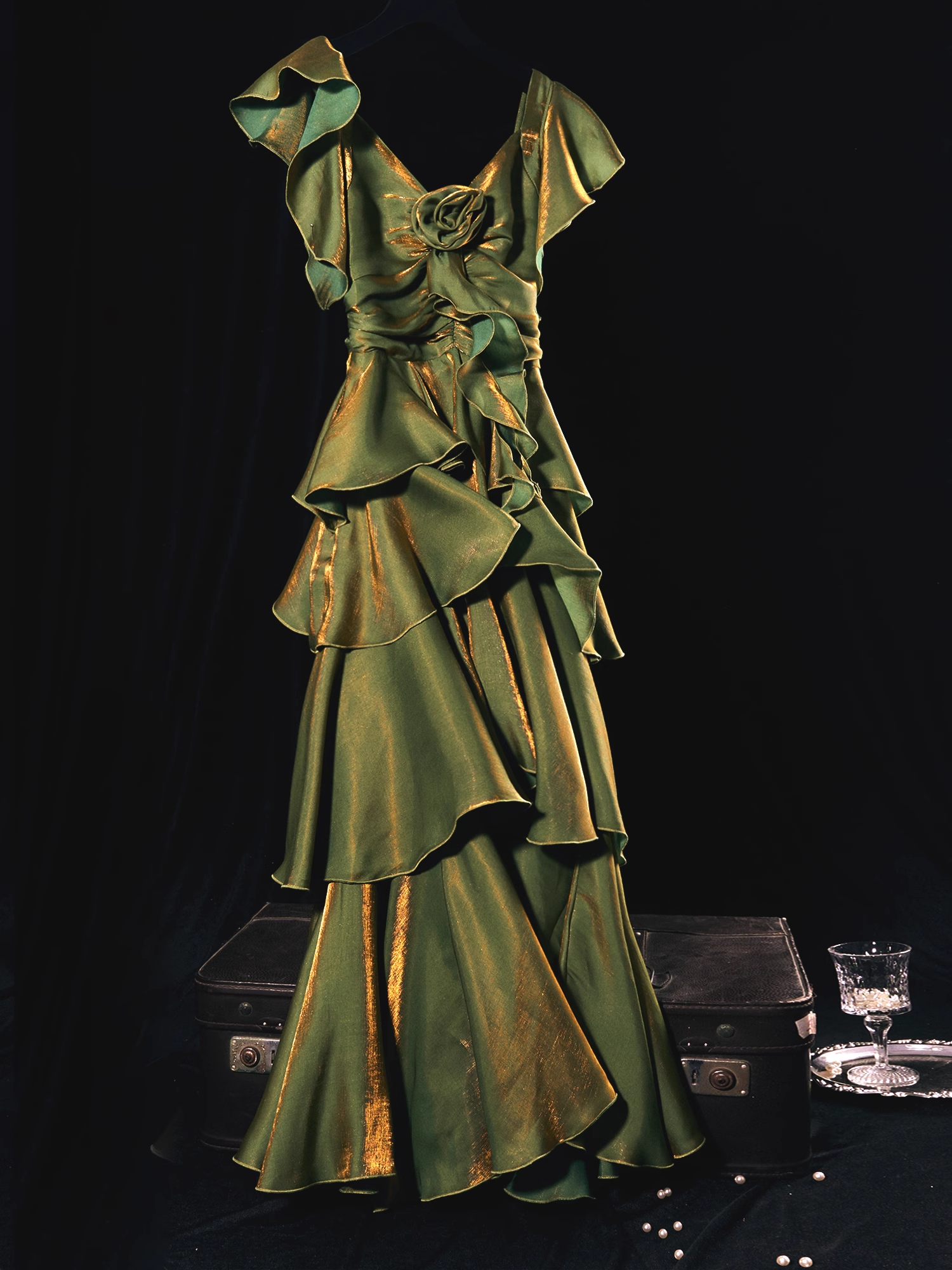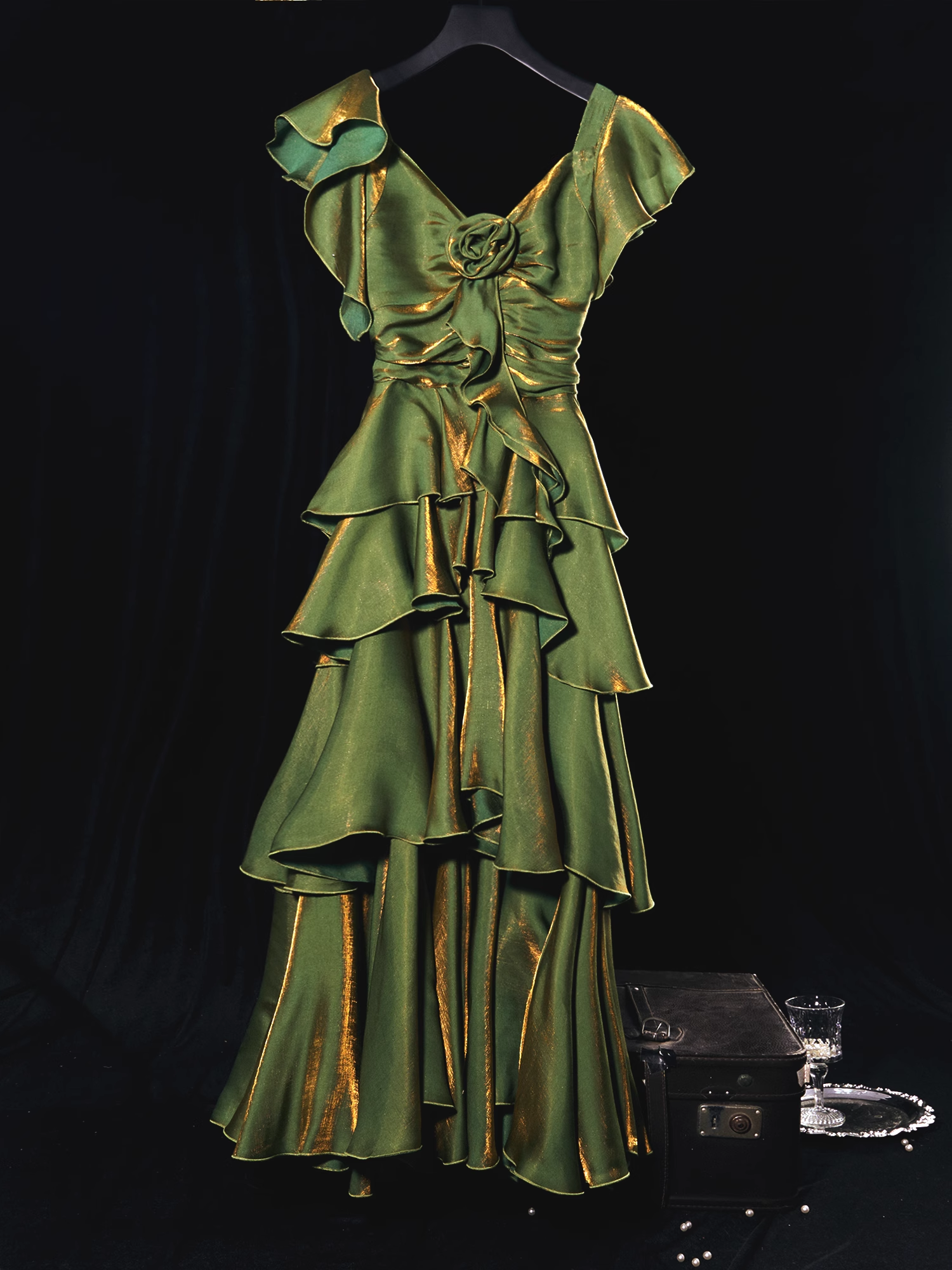 Niulatu French Retro A line Short Sleeves Green Long Prom Dress Birthday Dresses SD499