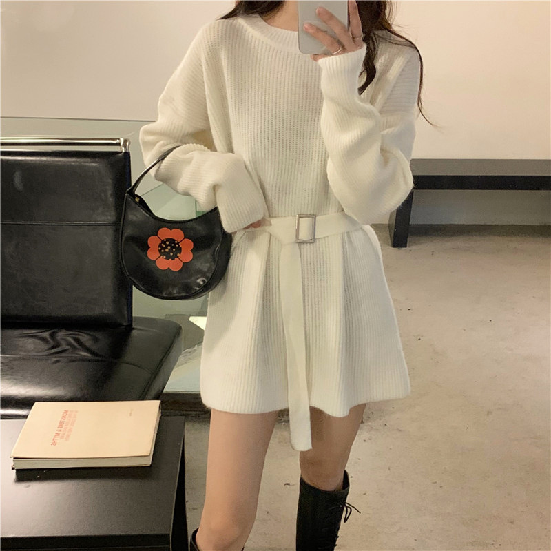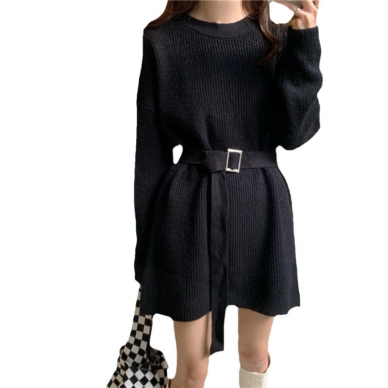 French Retro High-End Retro Knitted Dress Women's Spring And Autumn Chic Women's Beautiful Goddess Fan Sweater Dress HZ0108